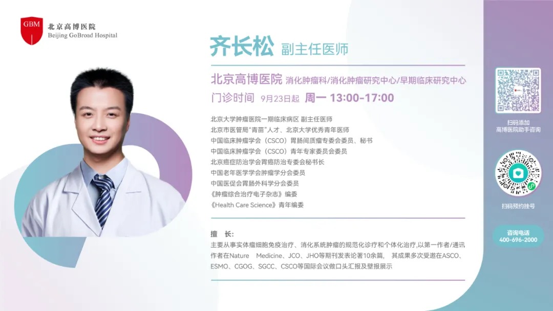 齐长松主任出诊时间:每周一13:00-17:00(9月23日起),长按/扫描上图中的小程序码即可预约挂号。