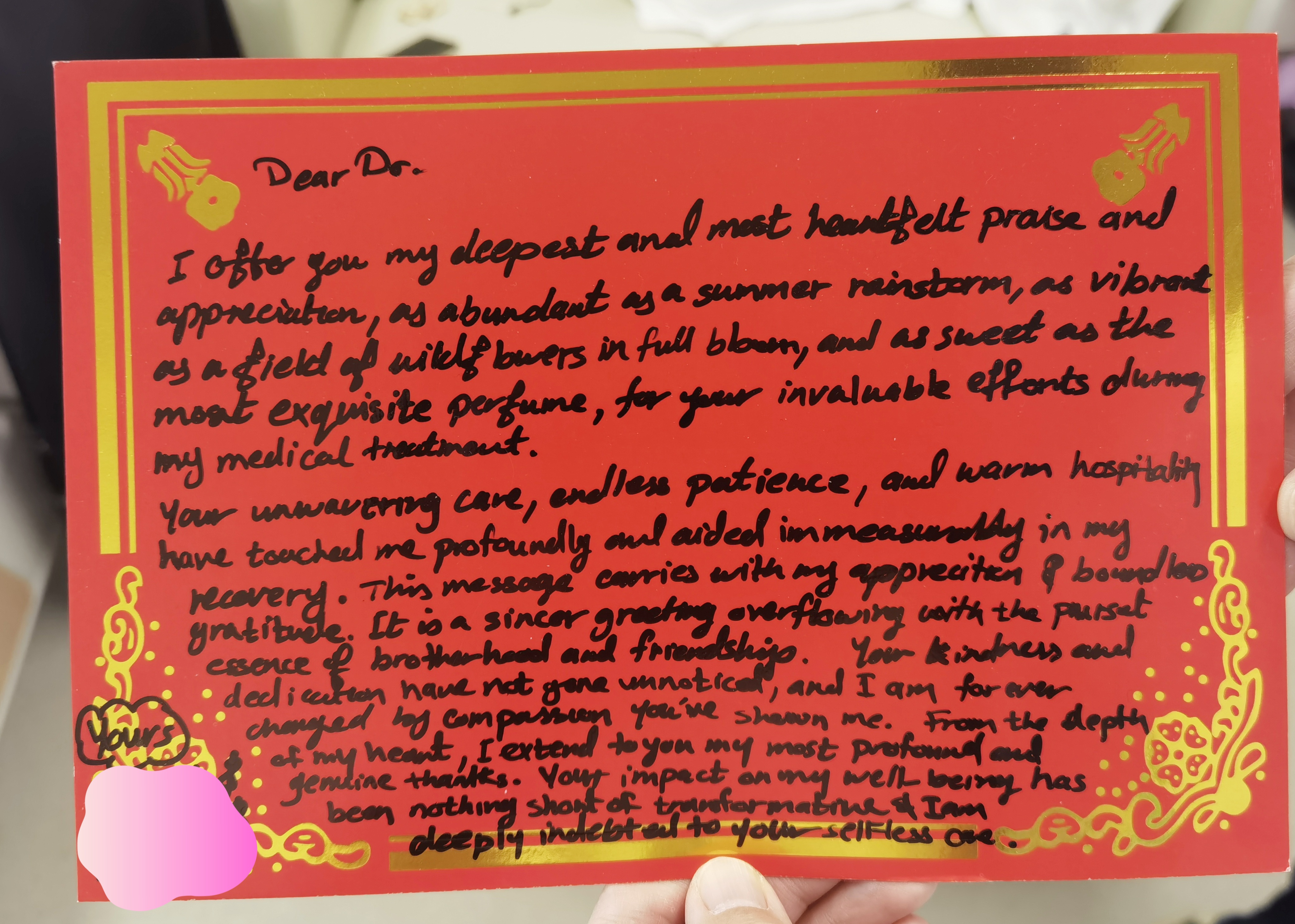 科室主任秦海峰强调:“从问候方式到诊疗细节的尊重,是医疗质量与人文温度的双重保障,我们将以专业筑底、文化搭桥的模式不断提升国际患者的就医体验。”
