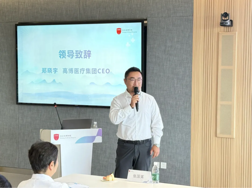 高博医疗集团CEO郑晓宇在讲话中向全体医护致敬,肯定北京高博医院作为集团最大医院取得的成绩,其影响力已辐射国内外。他提及年轻医生的快速成长为医院注入活力,希望医院成为集团名片,与医护人员相互成就,迈向全球视野下的行业领航者,成为难治病人的终点站,同时让大家在此收获美好职业经历。