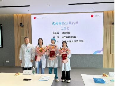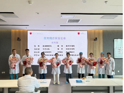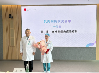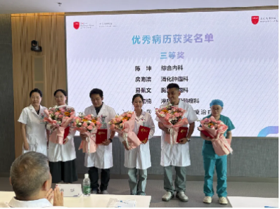 接下来是优秀病历奖颁奖仪式。活动旨在规范病历书写、提升医疗质量,共评选出一等奖1名、二等奖3名、三等奖5名、优秀奖8名。尚华院长、陈凤英副院长、张国英主任为获奖者颁奖。连续两届一等奖得主、血液肿瘤免疫治疗科吴藩医师分享感言,表示将持续提升医疗与病历书写质量,不负患者与医院期望。