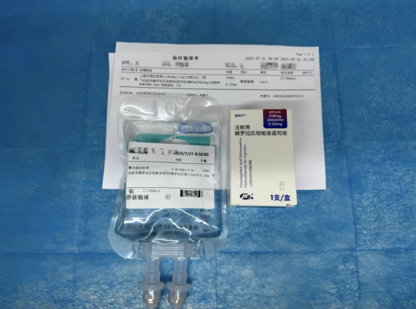 北京高博医院兼顾治疗效果与患者体验,关注化疗期间的对症支持需求。2025年7月31日,医院开出中国原研超长效双靶点止吐新药磷罗拉匹坦帕洛诺司琼(瑞坦宁®)的北京院内首张处方。化疗所致恶心呕吐(CINV)是肿瘤患者常见不良反应,尤其超延迟期(化疗后4-7天)恶心呕吐,此前国内缺乏高效预防药物。该新药落地不仅填补临床空白,更体现 “患者需求至上”的理念,让肿瘤治疗既有效 又舒适,切实提升患者治疗依从性与生活质量。