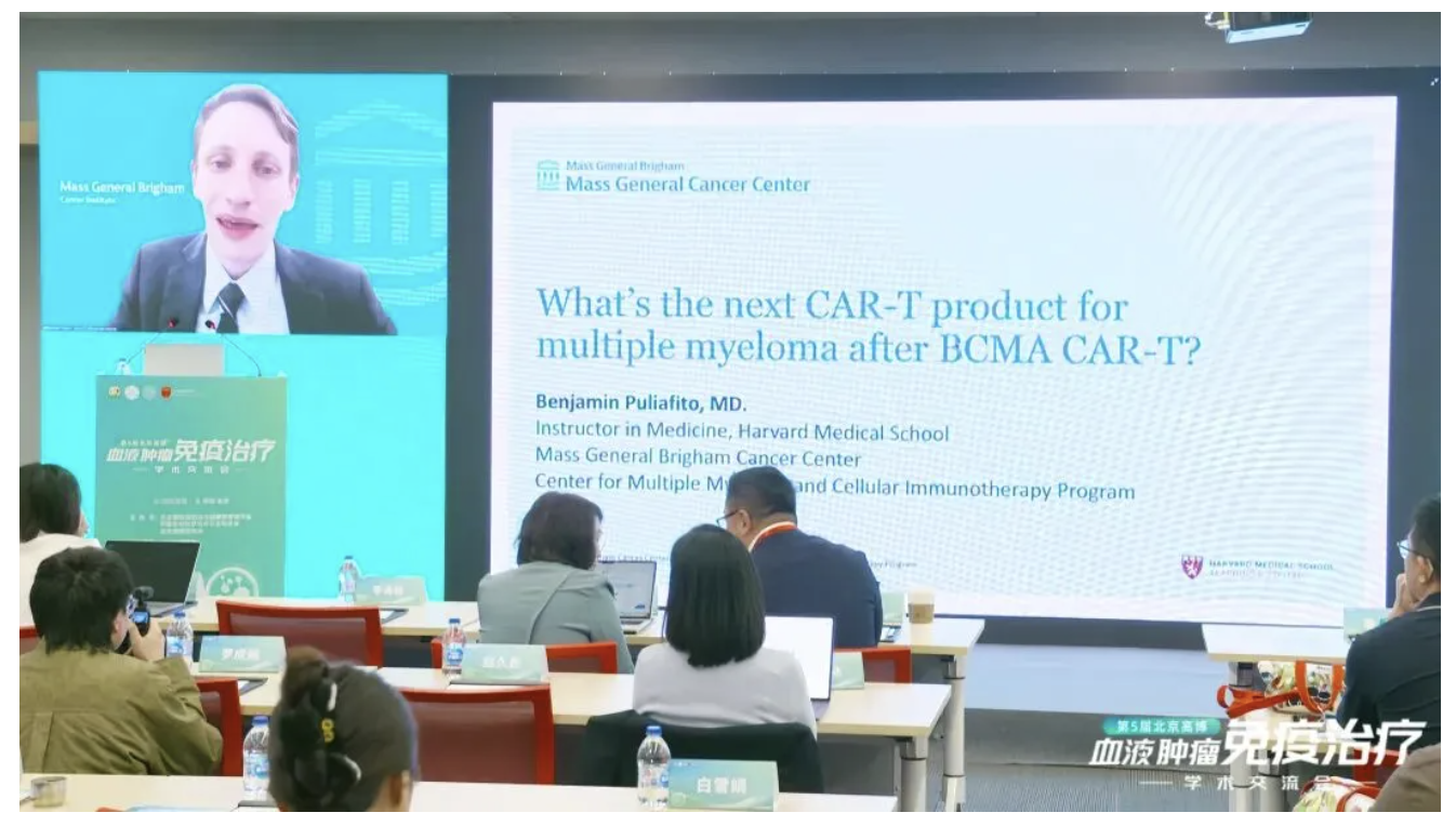 美国麻省总医院Benjamin Puliafito博士以题为 “What’s the next CAR-T product for MM after BCMA CAR-T”的主题报告正式拉开本次会议的帷幕,从国际前沿视角出发,系统回顾了当下BCMA靶点CAR-T在多发性骨髓瘤中的临床进展与应用经验,全面解读了BCMA CAR-T的耐药关键机制,并重点阐述了BCMA之后新一代靶点的研发方向与战略布局。他同时剖析了在多靶点协同构建、细胞功能优化及毒副反应管理等方面的创新突破,展示了其团队在产品迭代与机制探索上的卓越成果,为多发性骨髓瘤免疫治疗的持续创新与未来探索提供了深刻启迪与前行力量。