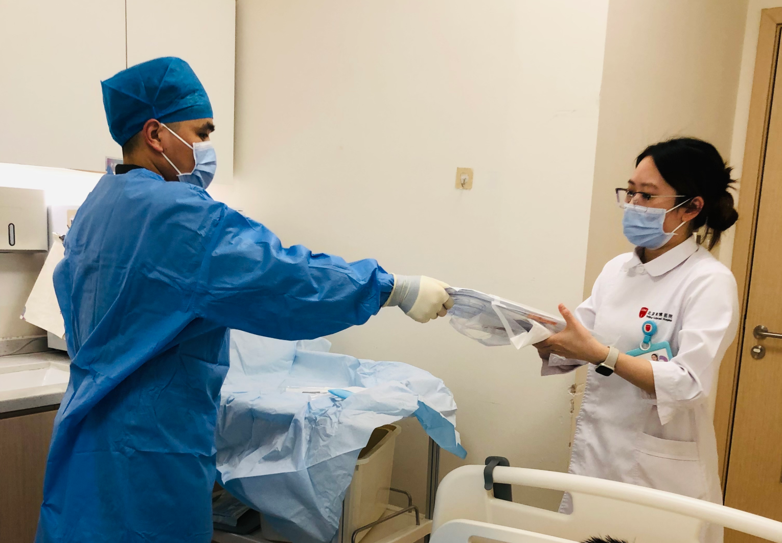 当天,院内护理部近期工作任务较为繁重,医护人员已忙碌至晚上八点多。得知消化肿瘤科室面临高博首例下肢PICC置管的紧急需求后,来自静脉输液治疗管理小组的樊鹏飞,第一时间赶到现场助力置管术开展,为患者后续治疗赢得了宝贵时间。